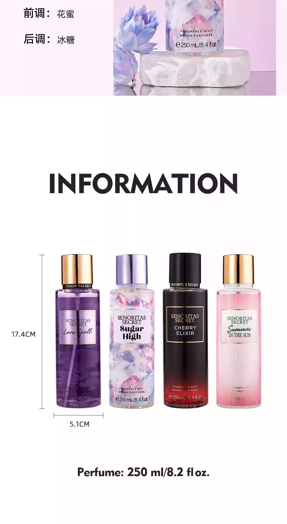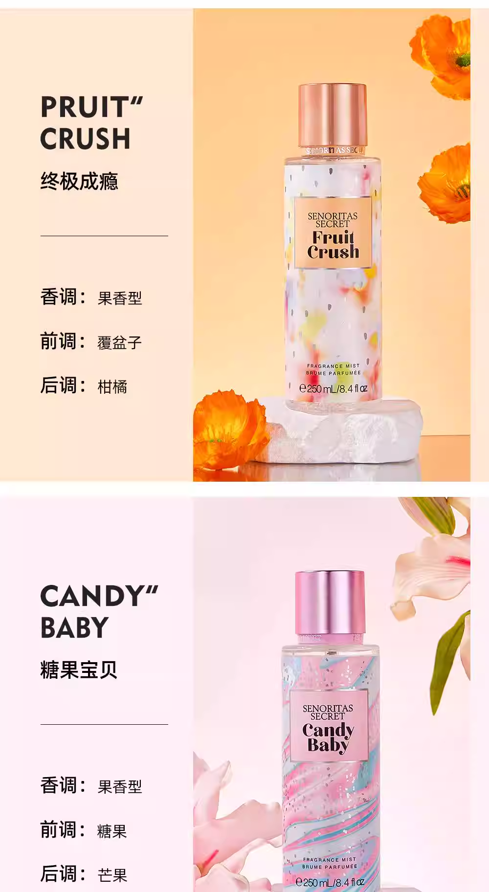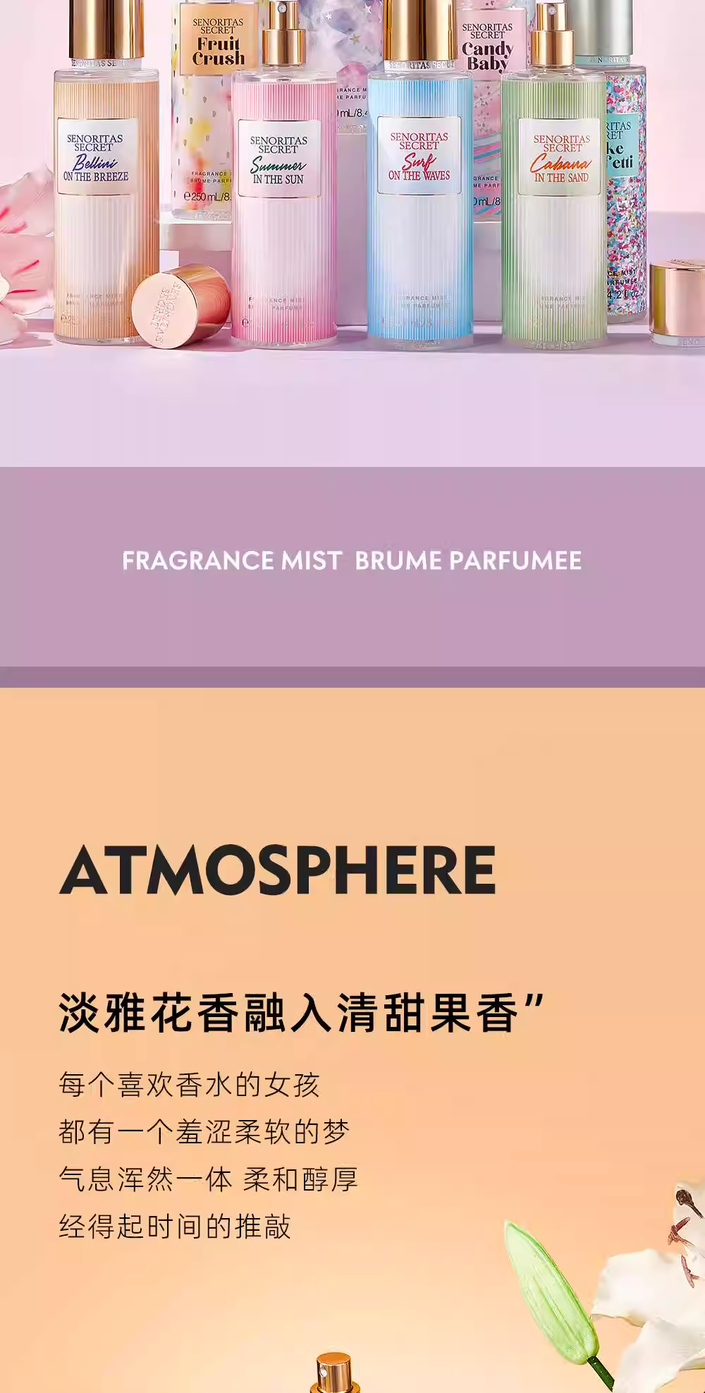 SENORITAS新款持久淡香花果香身體噴霧香水進口法式魅力香