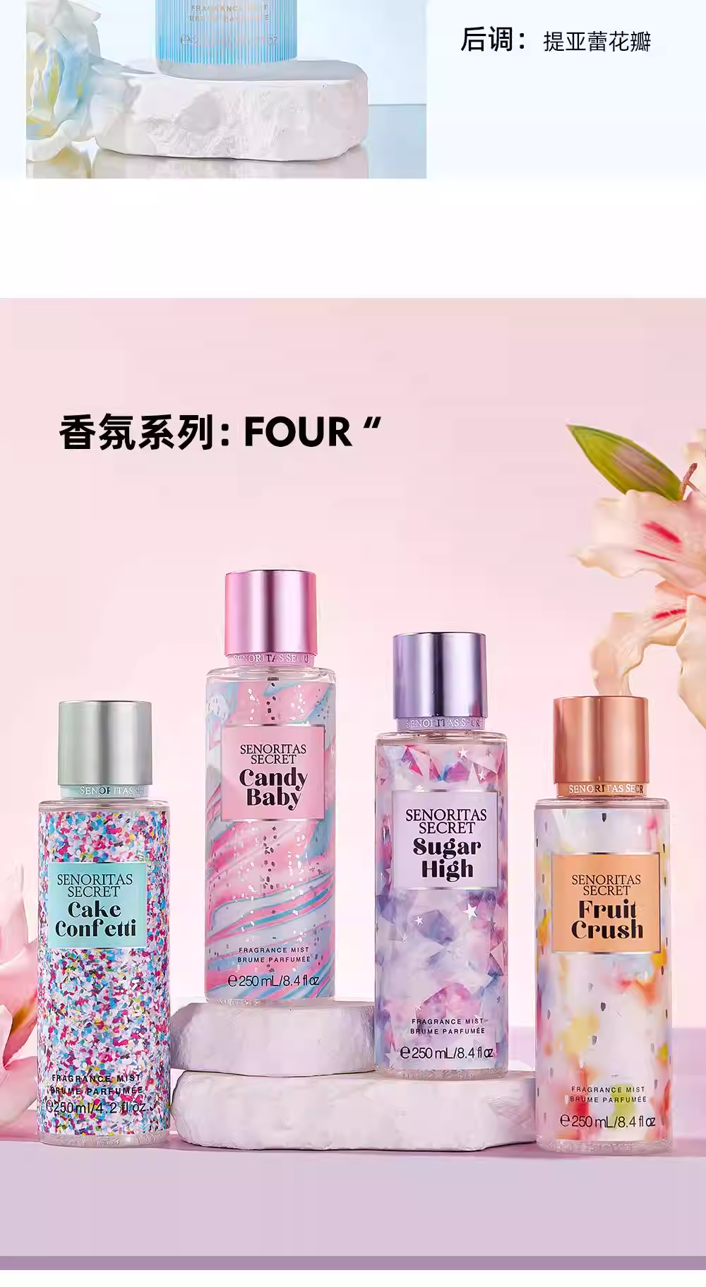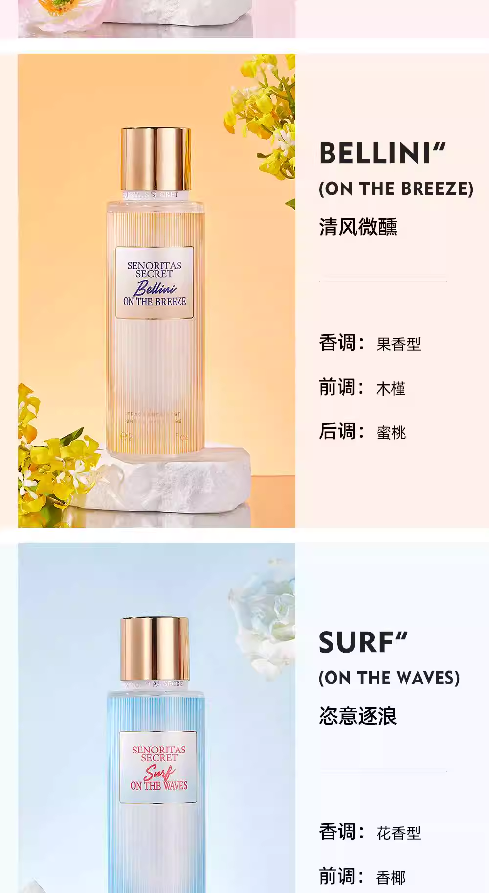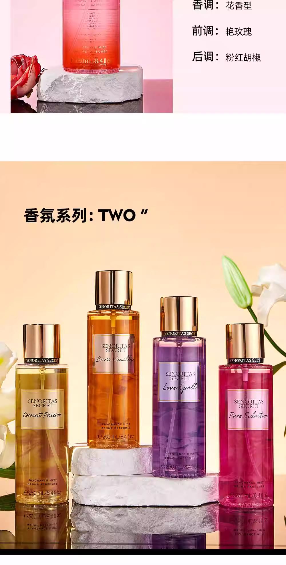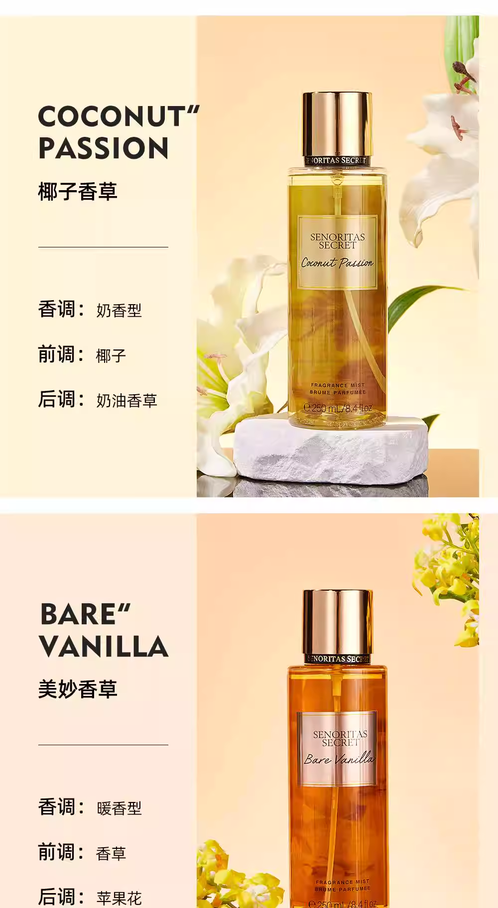 SENORITAS新款持久淡香花果香身體噴霧香水進口法式魅力香